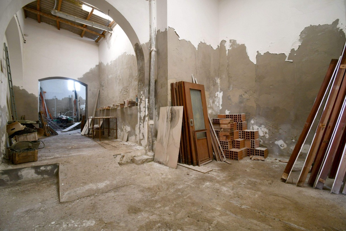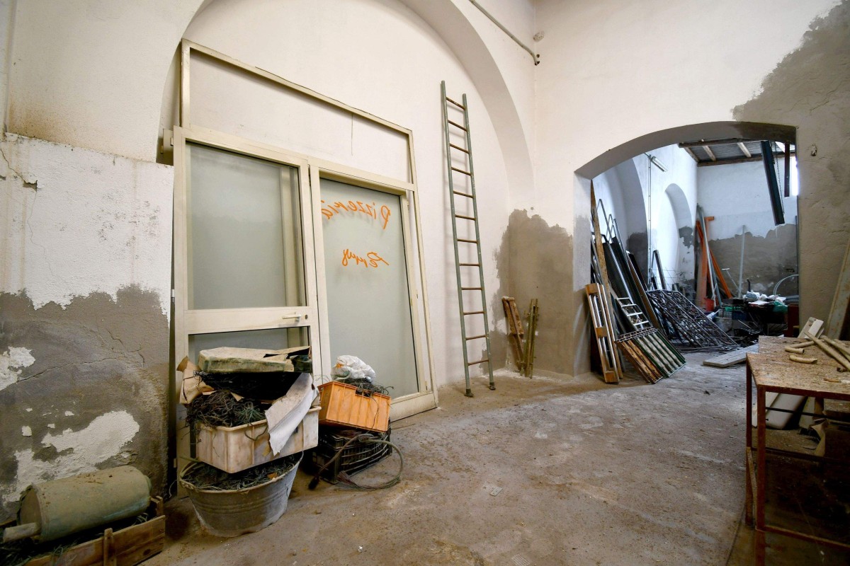 La proprietà dispone di un ingresso carraio coperto che conduce a un cortile interno, al quale si affacciano ampi ambienti al piano terra per una superficie complessiva di circa 480 mq, facilmente adattabili come zona giorno, garage, laboratori, spazi hobby o depositi.