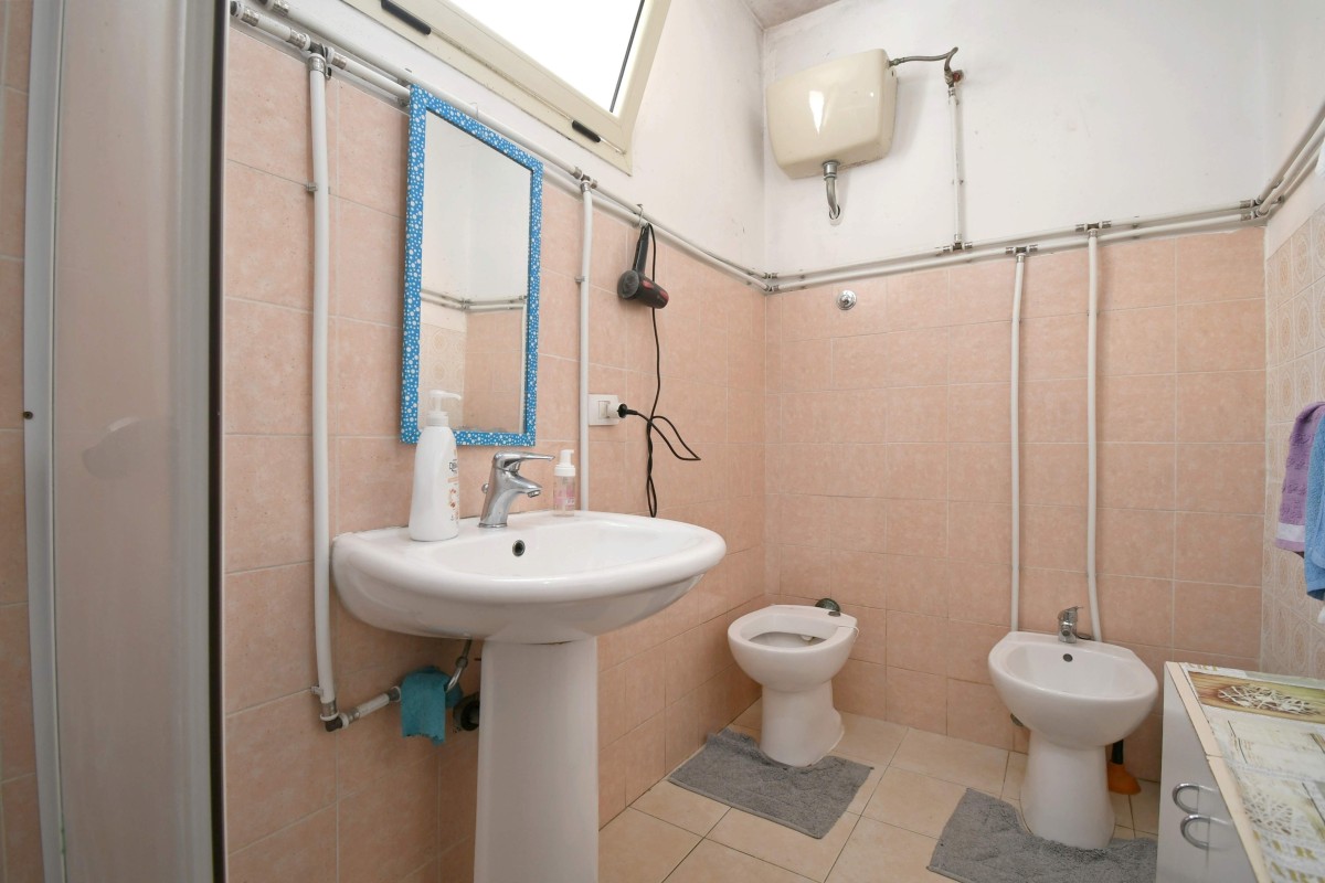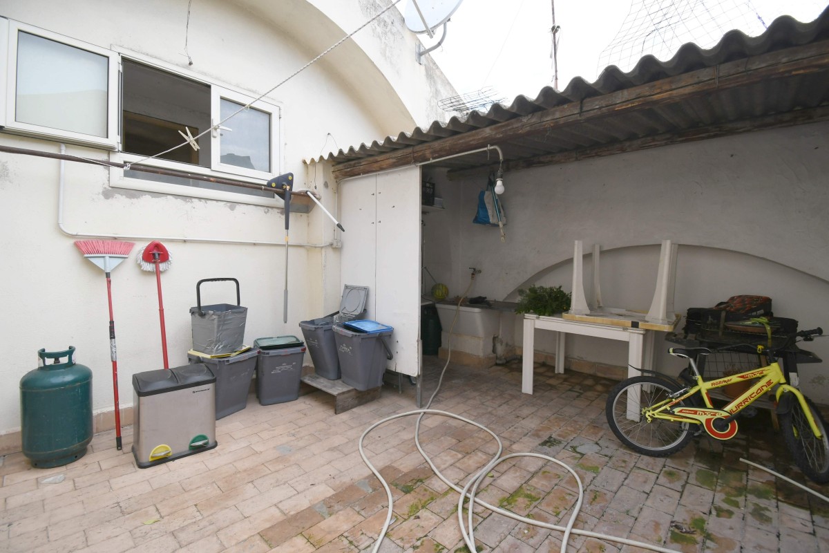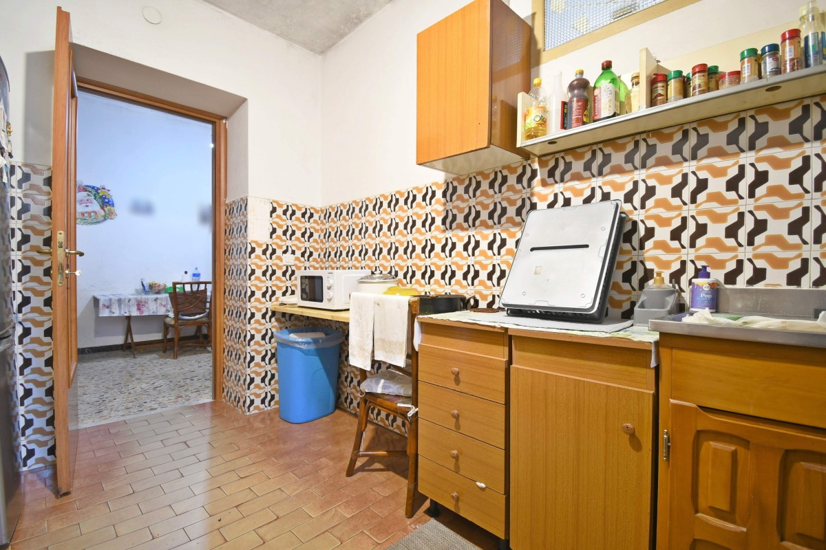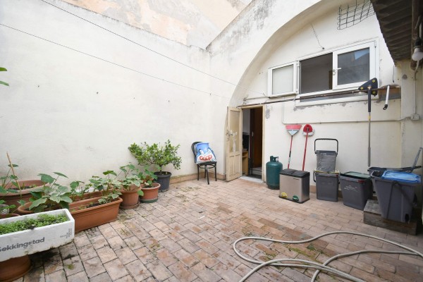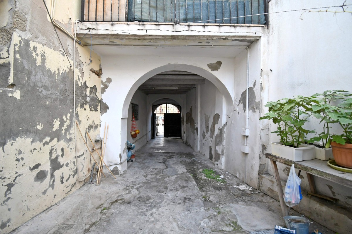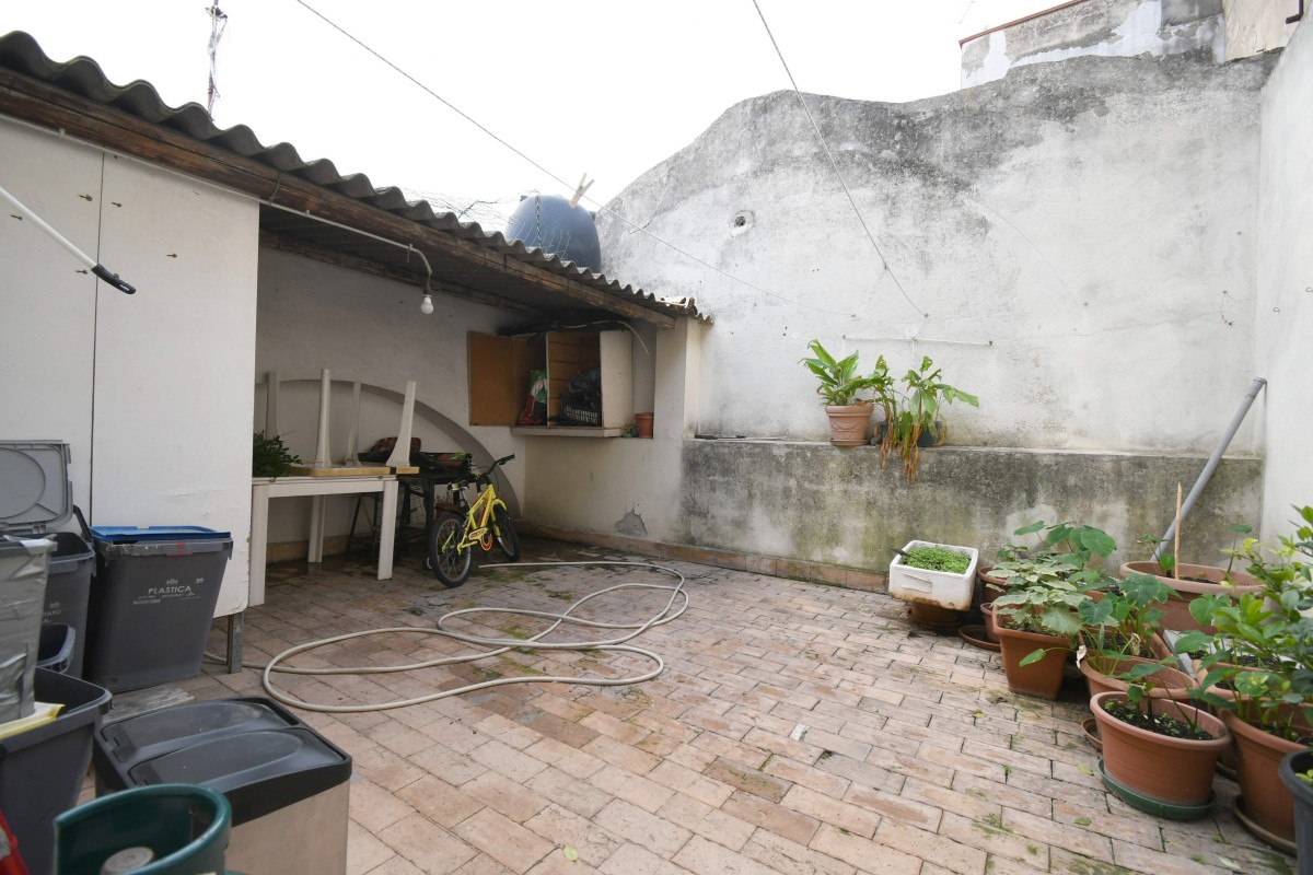 Dal cortile si accede a una scala interna che porta al piano superiore, dove si trova un appartamento di circa 100 mq con terrazzino a livello, perfetto come abitazione principale, studio o dependance per ospiti.