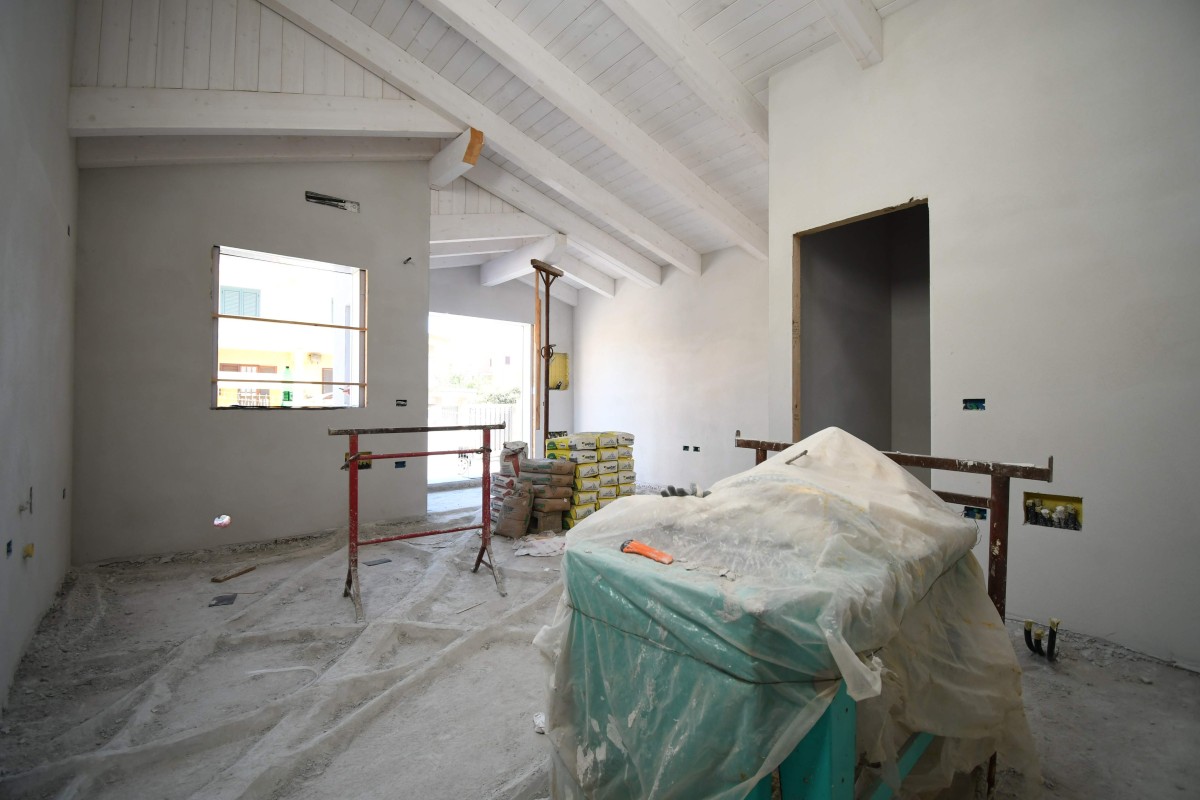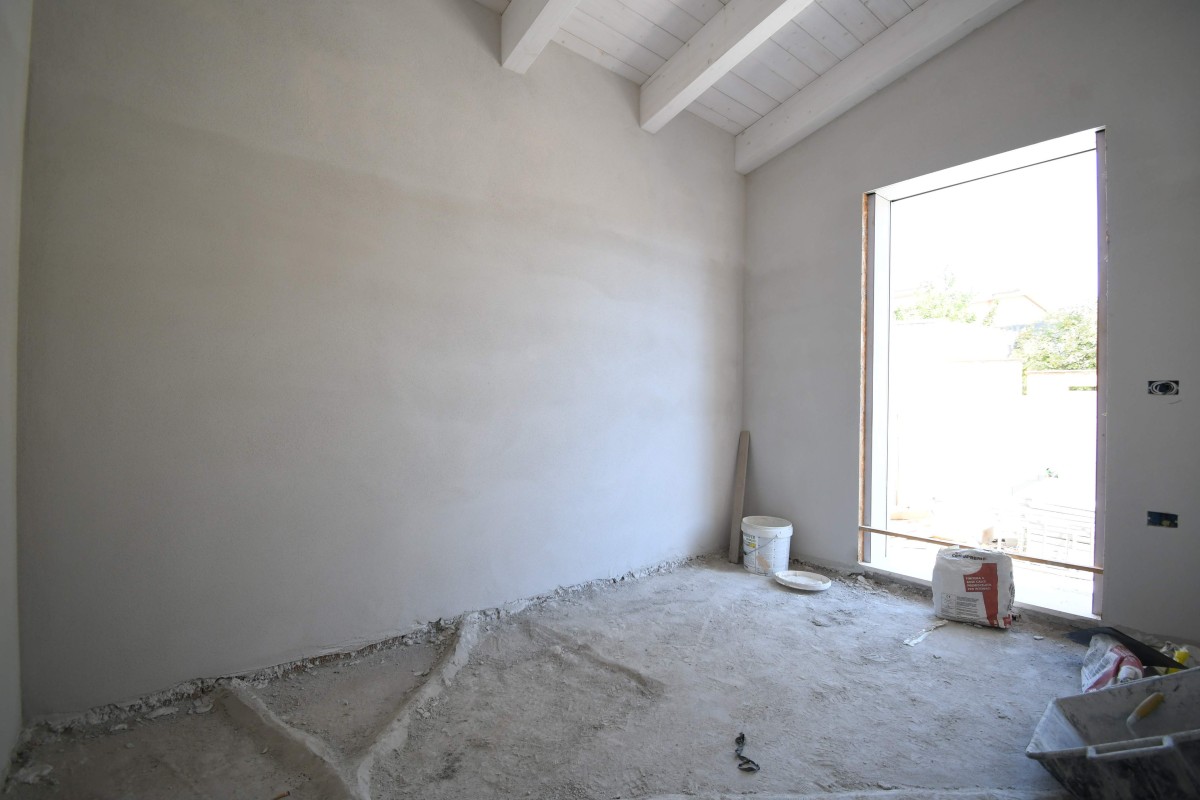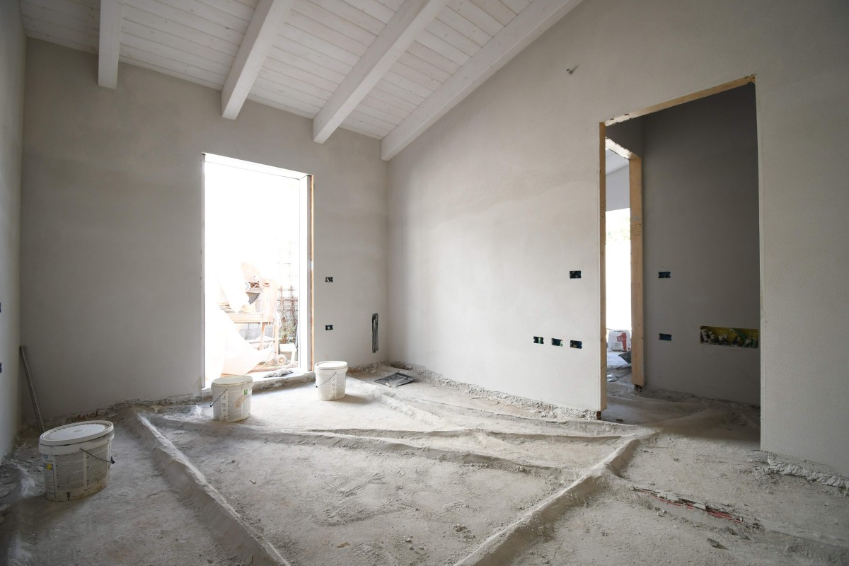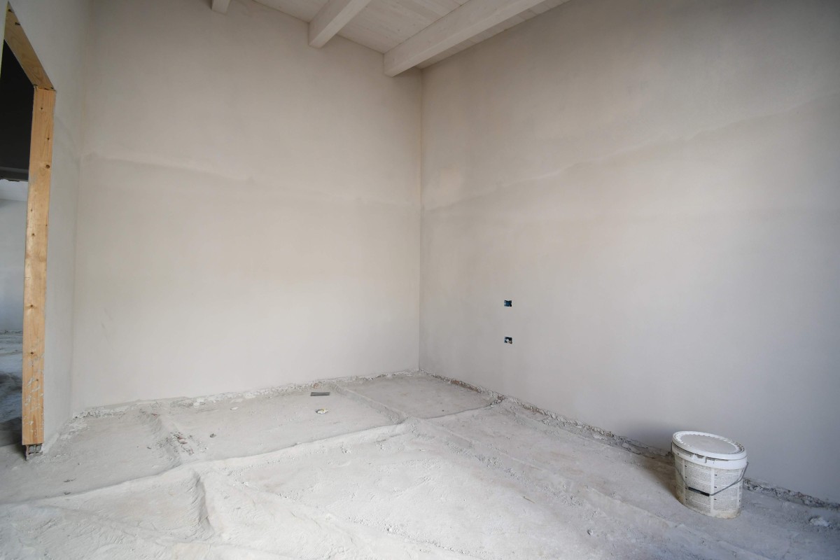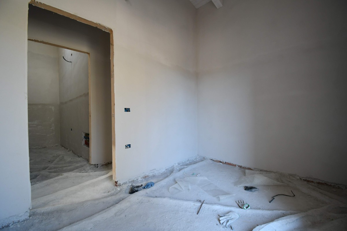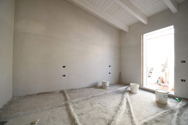 Si accede all'unità dal cancello carrabile che ci dà accesso al cortile. Proseguendo verso il fabbricato troviamo il portoncino blindato, dal quale accediamo all'immobile. All'ingresso ci accoglie il soggiorno di oltre 30 mq con cucina a vista. Questo spazio sarà molto luminoso.