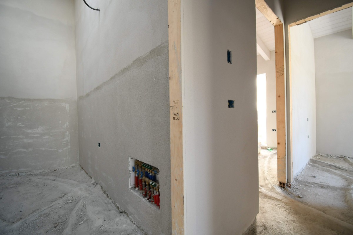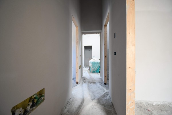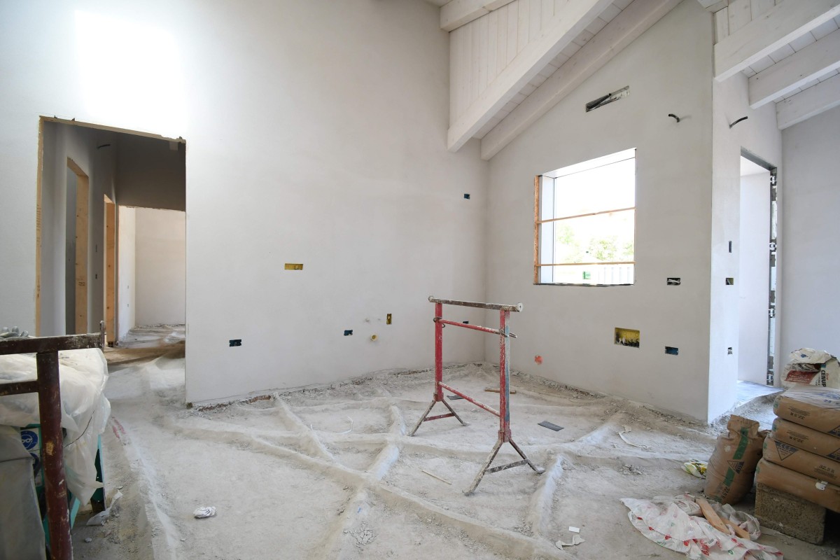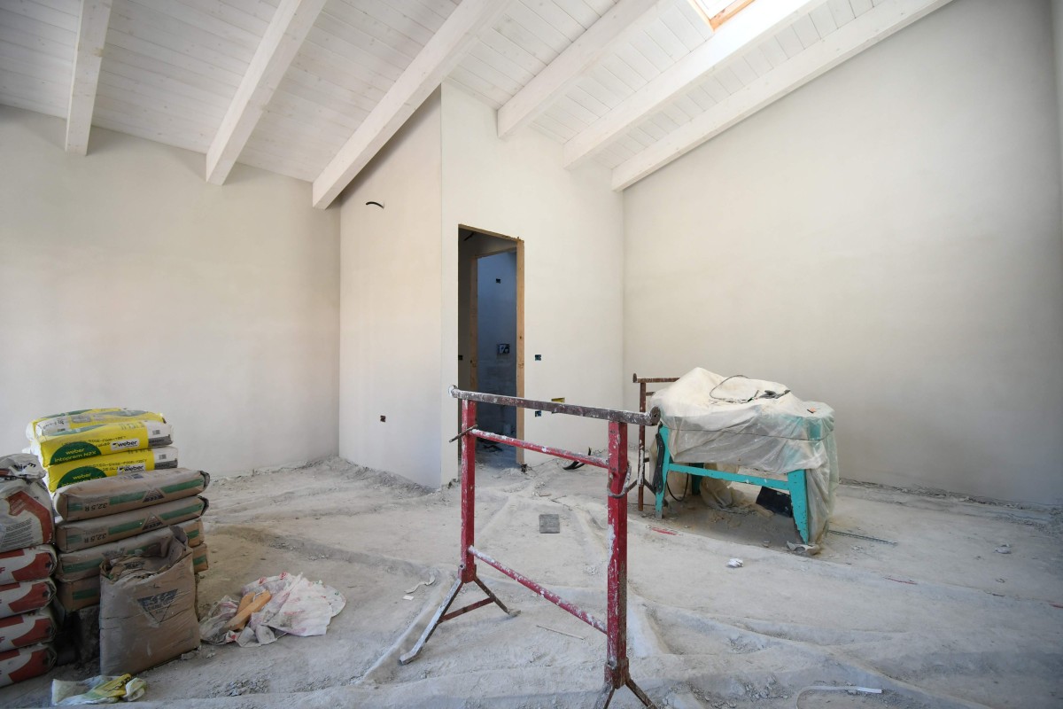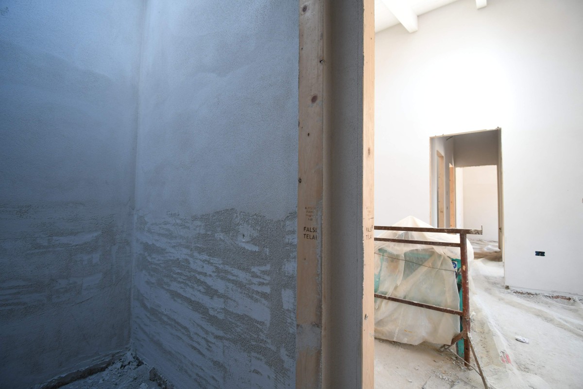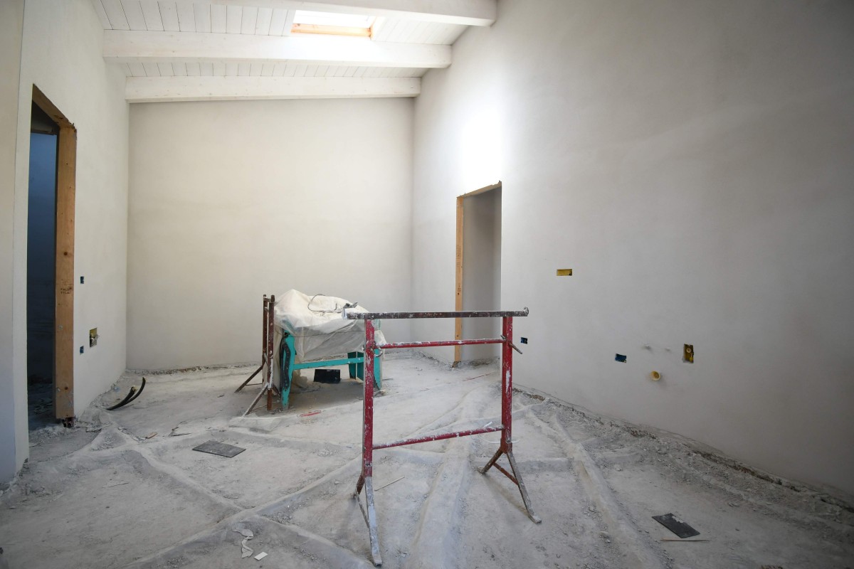 Si accede all'unità dal cancello carrabile che ci dà accesso al cortile. Proseguendo verso il fabbricato troviamo il portoncino blindato, dal quale accediamo all'immobile. All'ingresso ci accoglie il soggiorno di oltre 30 mq con cucina a vista. Questo spazio sarà molto luminoso.