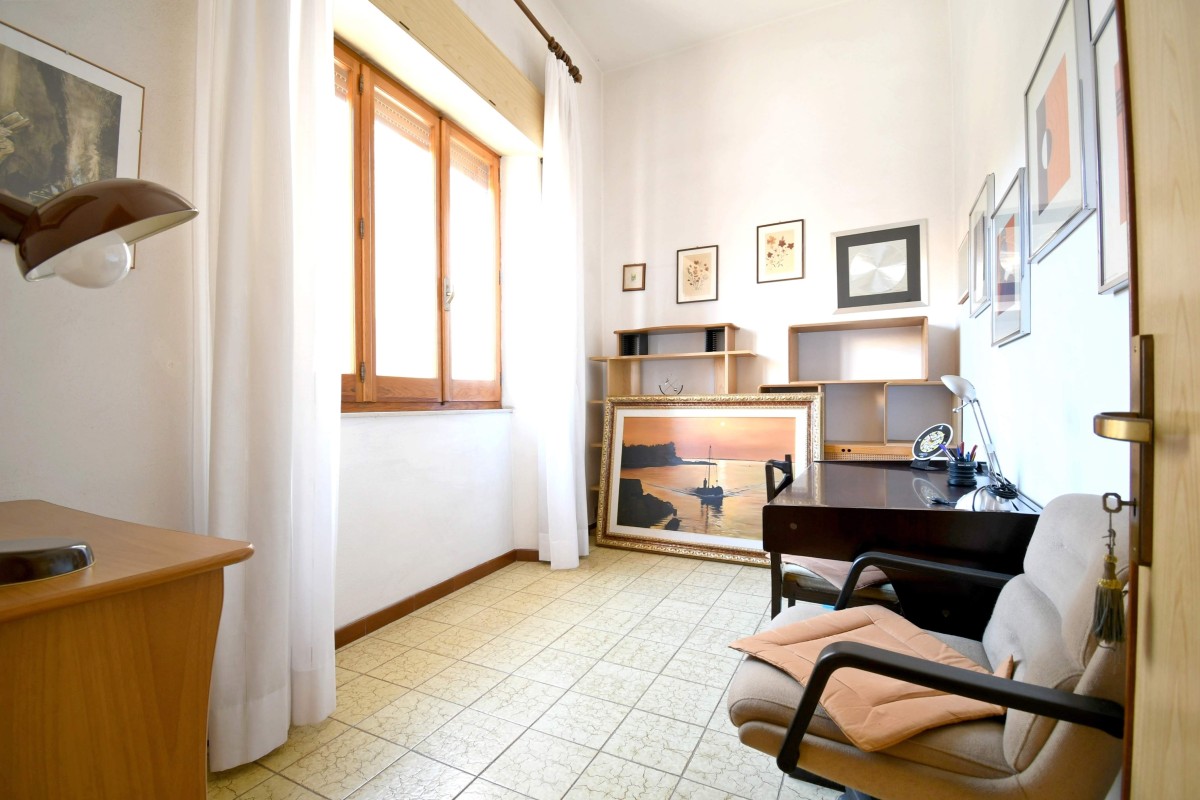 Piano Terra: Un'accogliente ingresso che introduce al soggiorno, alla spaziosa cucina abitabile, a una camera da letto e a un utile studio. Perfetto per chi necessita di un ambiente di lavoro separato o di una camera aggiuntiva al piano.