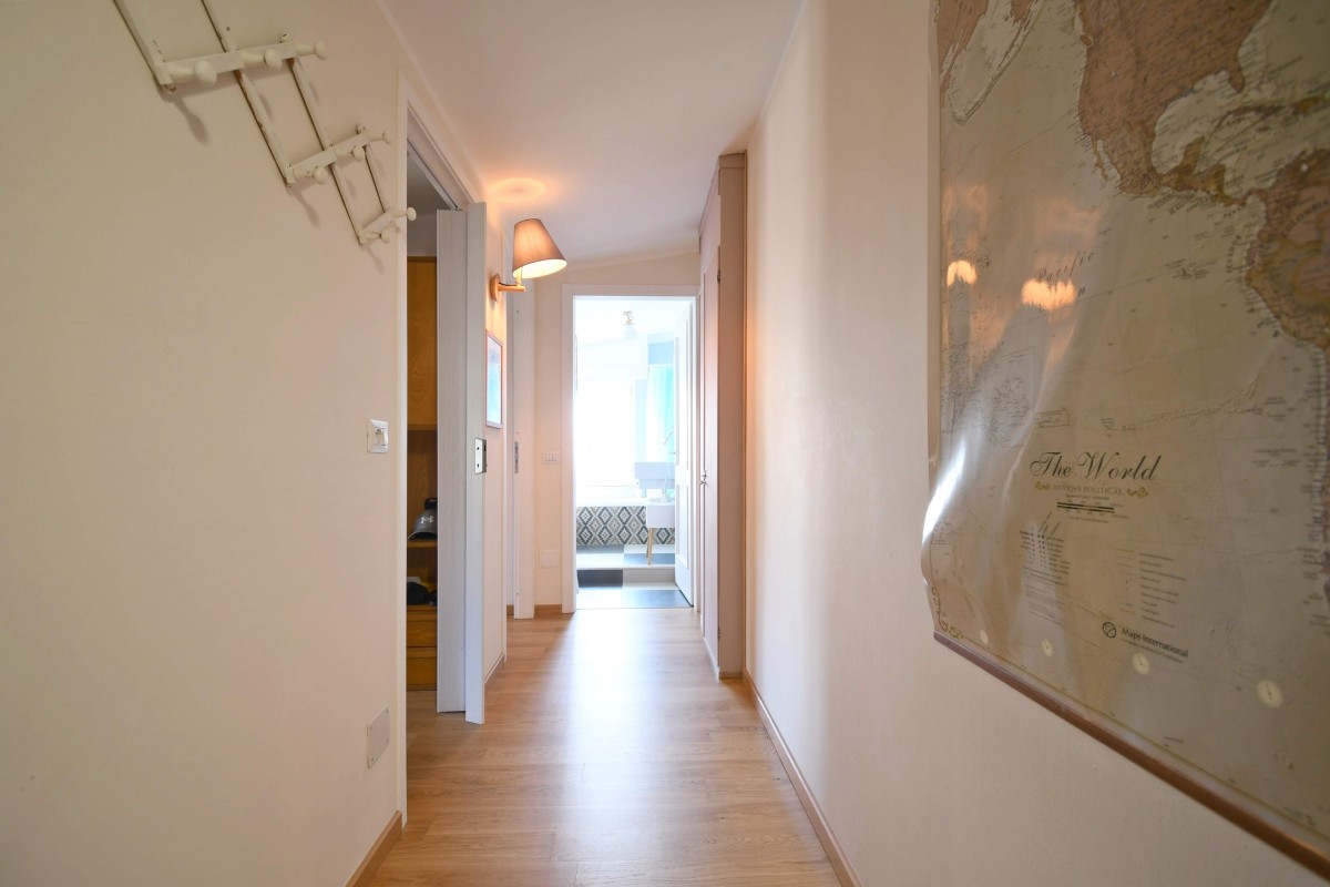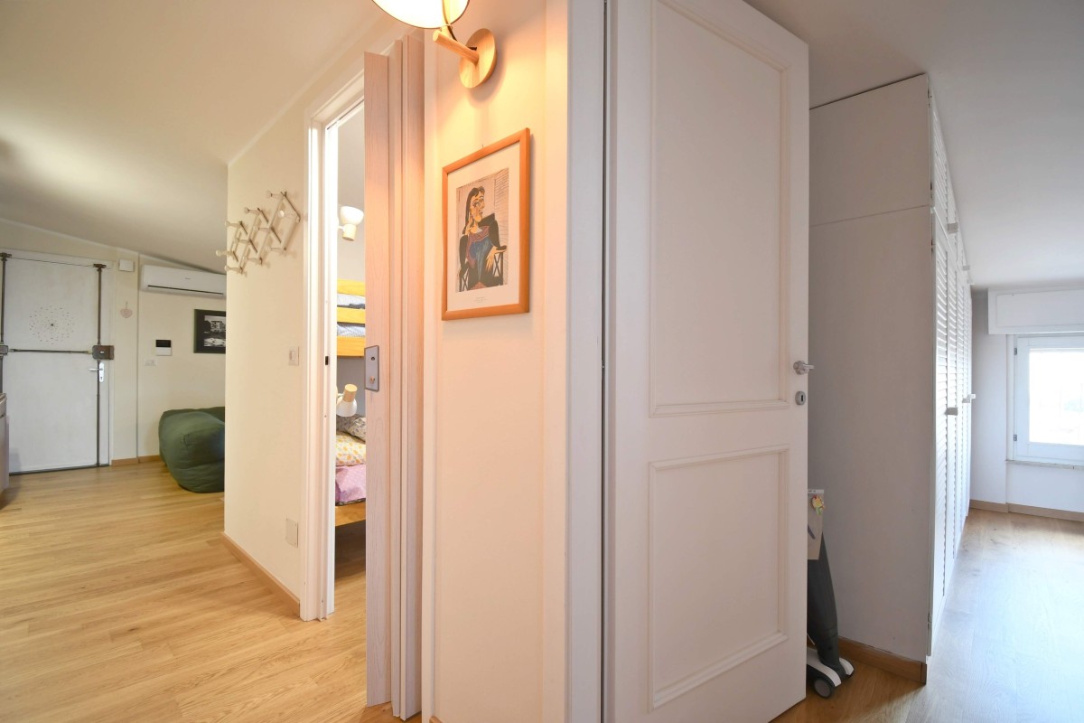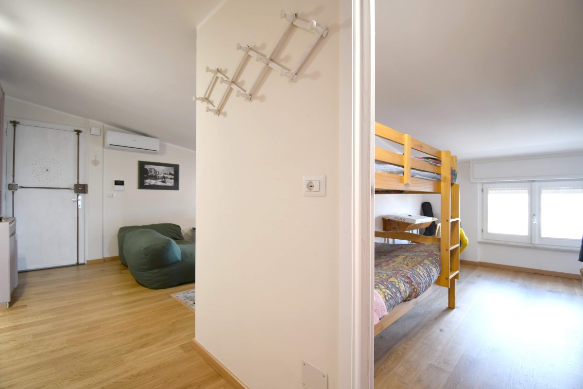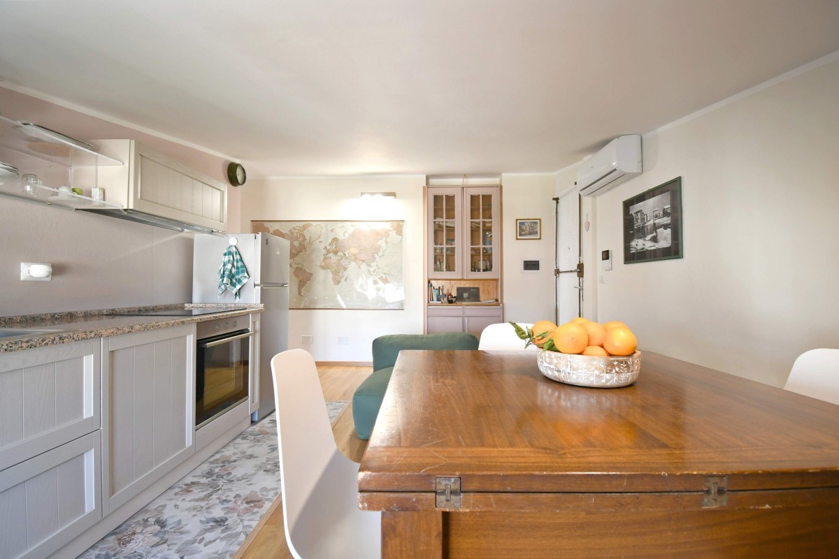 L'appartamento viene venduto completamente arredato, con soluzioni che coniugano estetica e praticità: