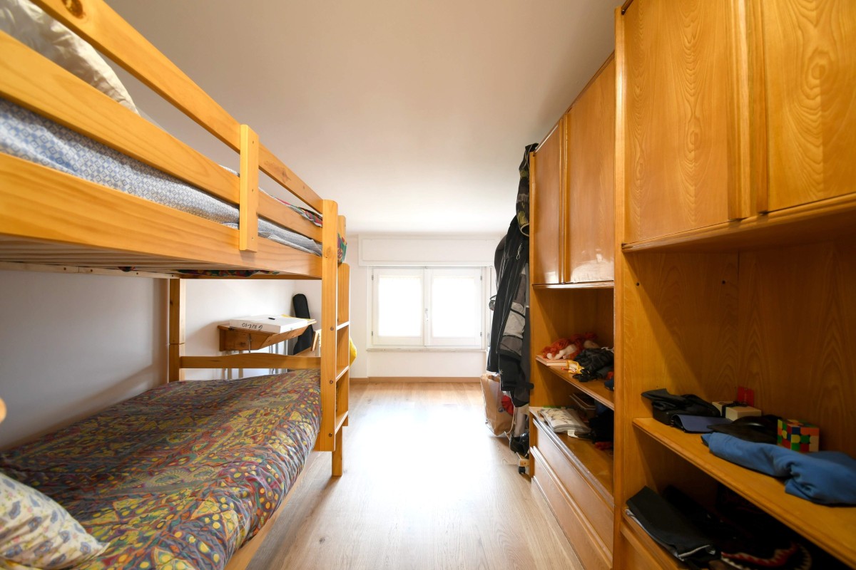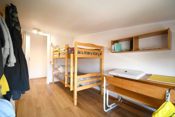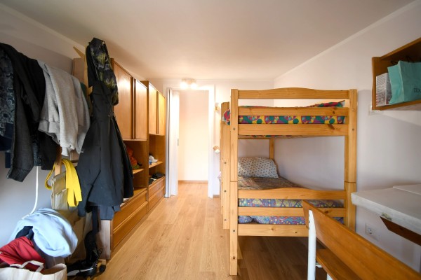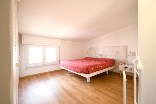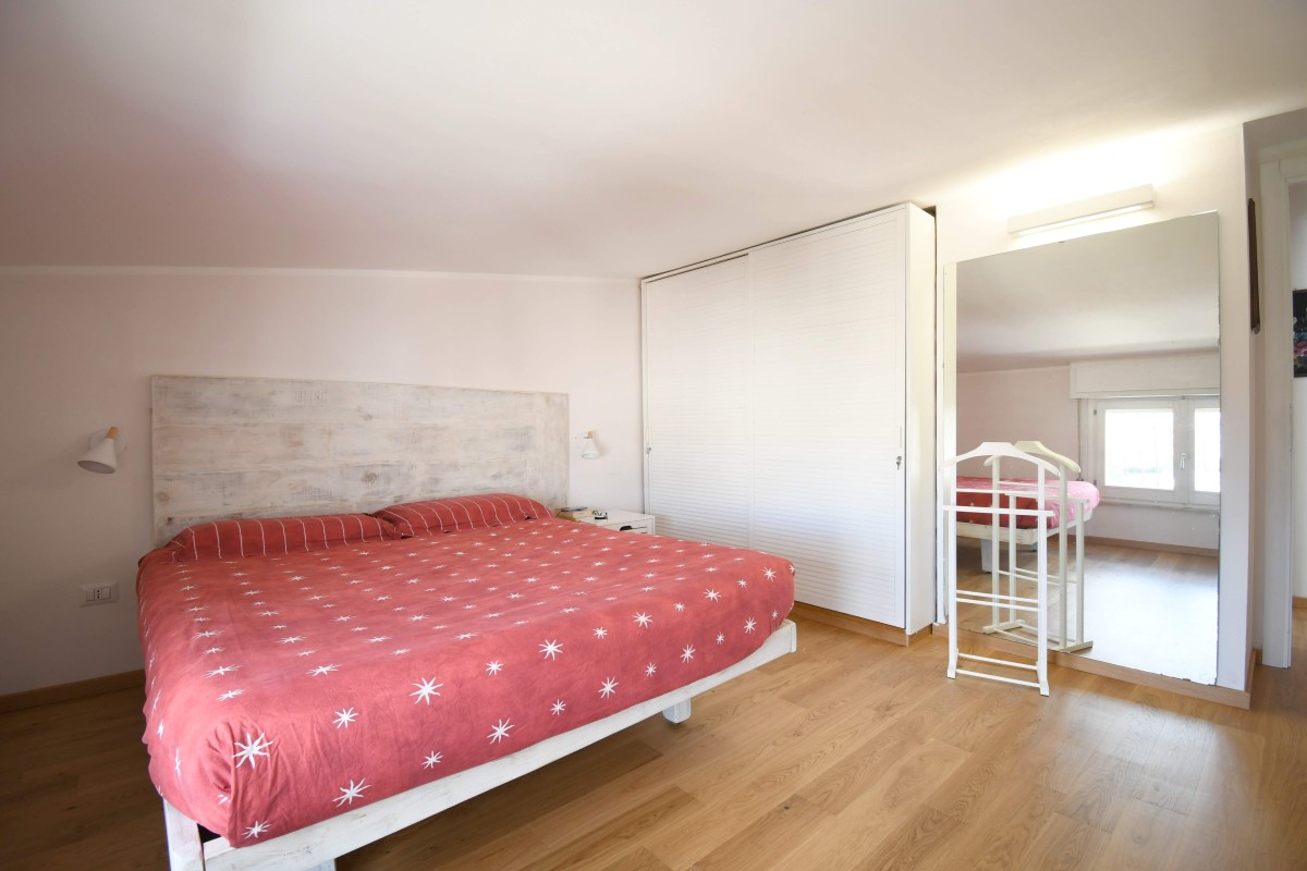 Zona Notte: Una camera matrimoniale spaziosa con armadiature in legno realizzate artigianalmente e una cameretta versatile, ideale per ospiti o per un ufficio domestico.