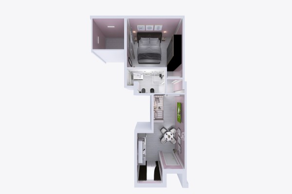 L’immobile è composto da un accogliente open space, bagno finestrato, camera da letto e un pratico cortiletto con accesso diretto dalla camera. Gli spazi sono progettati per garantire comfort e praticità in ogni dettaglio.