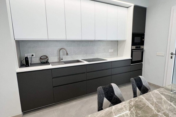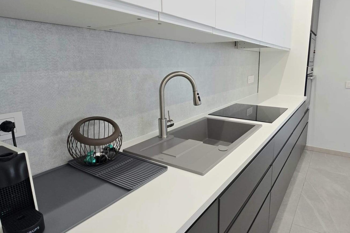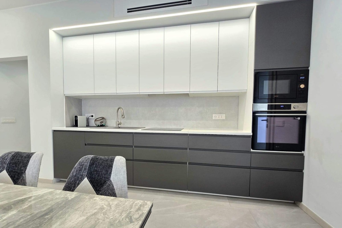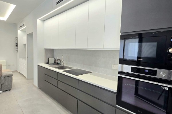 Zona Living: Un ambiente luminoso e moderno che integra soggiorno e angolo cottura, arricchito da un elegante angolo bar, ideale per i tuoi momenti di relax o per accogliere gli ospiti.
