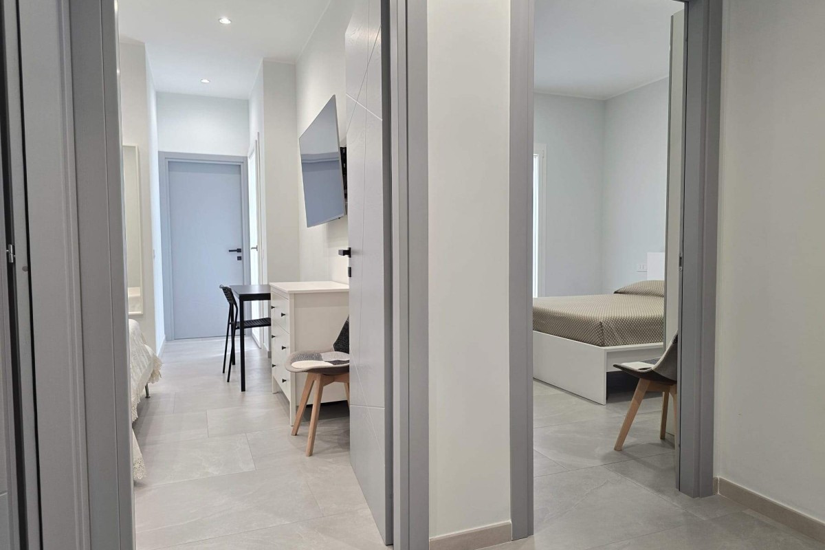 Zona Notte: Due ampie camere matrimoniali pensate come vere suite. La master bedroom vanta un bagno privato esclusivo e una spaziosa cabina armadio.