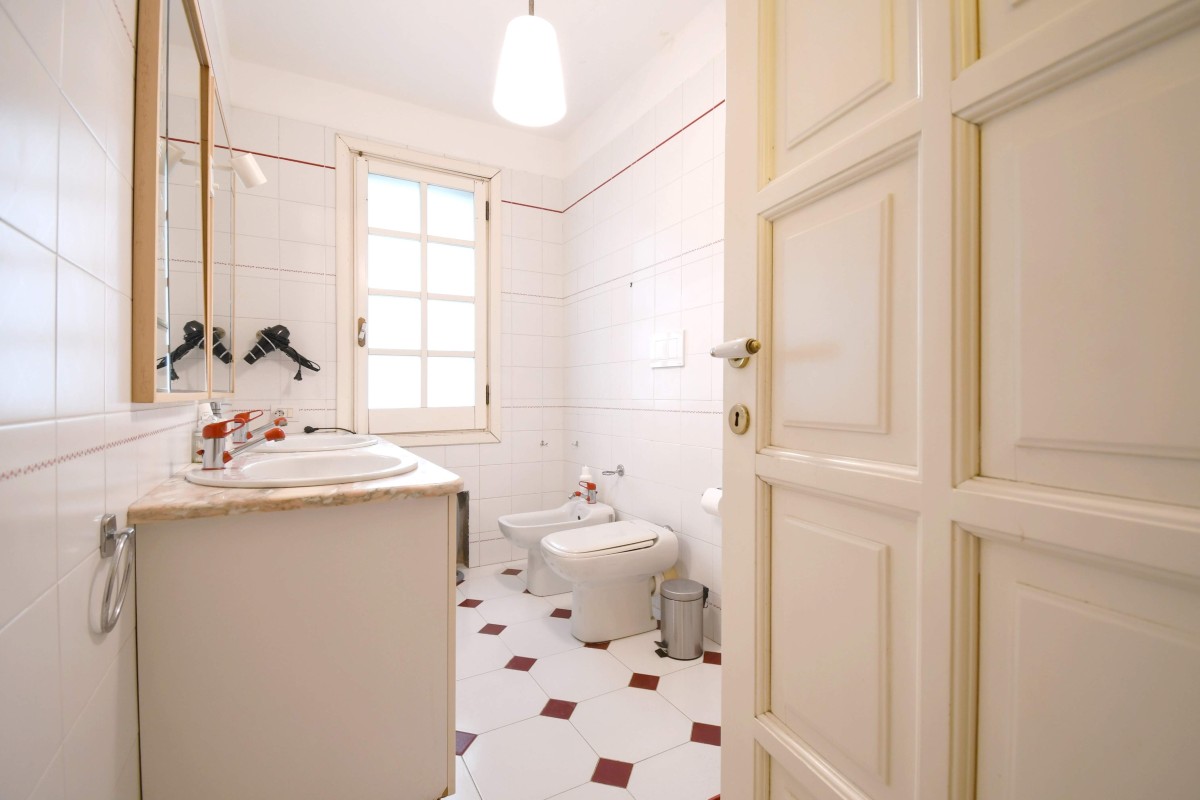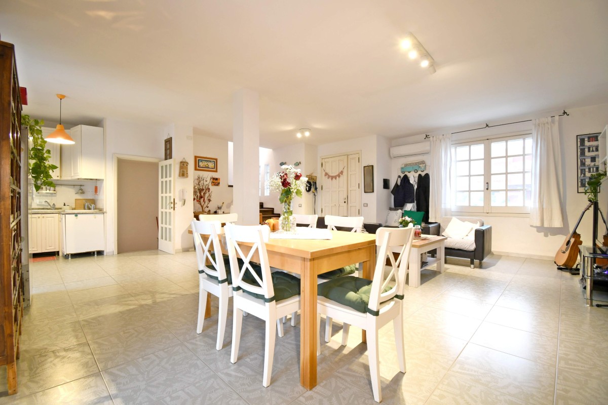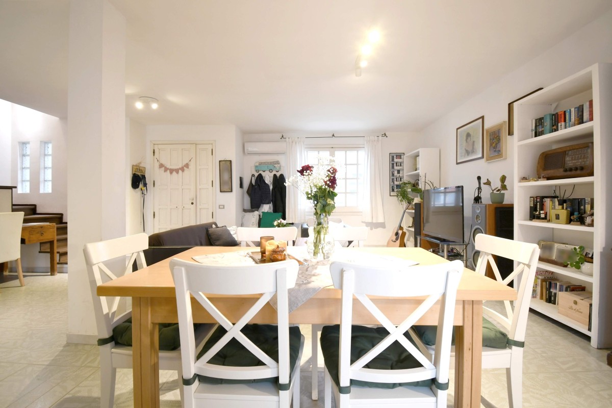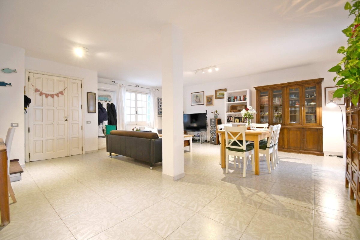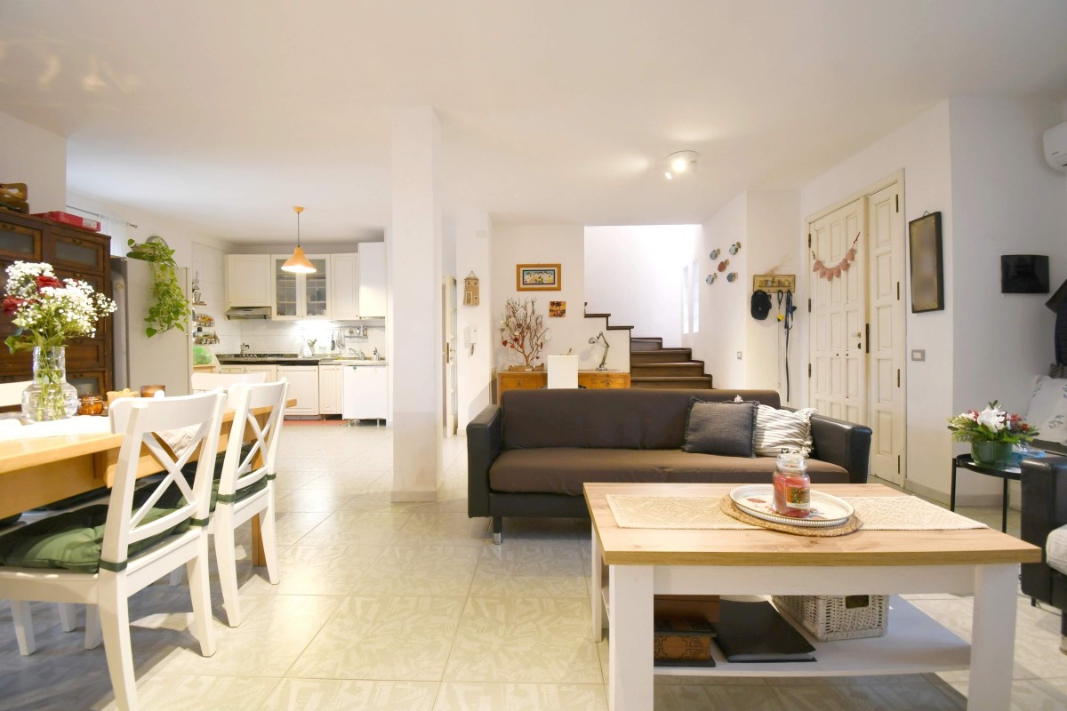 Varcando la soglia, si viene accolti da un ampio e luminoso doppio soggiorno con cucina a vista, uno spazio conviviale pensato per la vita quotidiana e per momenti di condivisione. Da qui si accede direttamente al cortile retrostante, un angolo di tranquillità che si affaccia verso il verde del Parco di Molentargius, perfetto per rilassarsi all’aperto in totale privacy.
