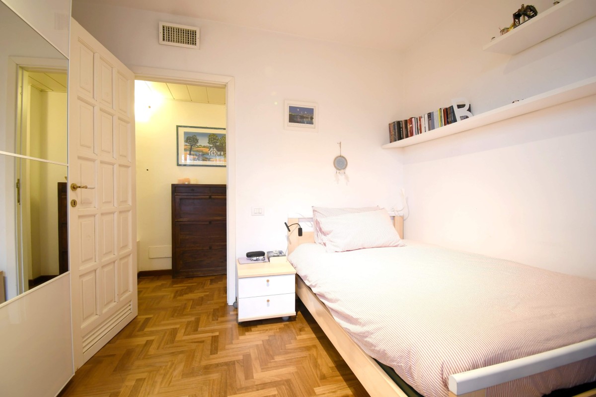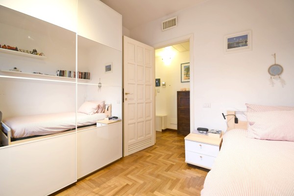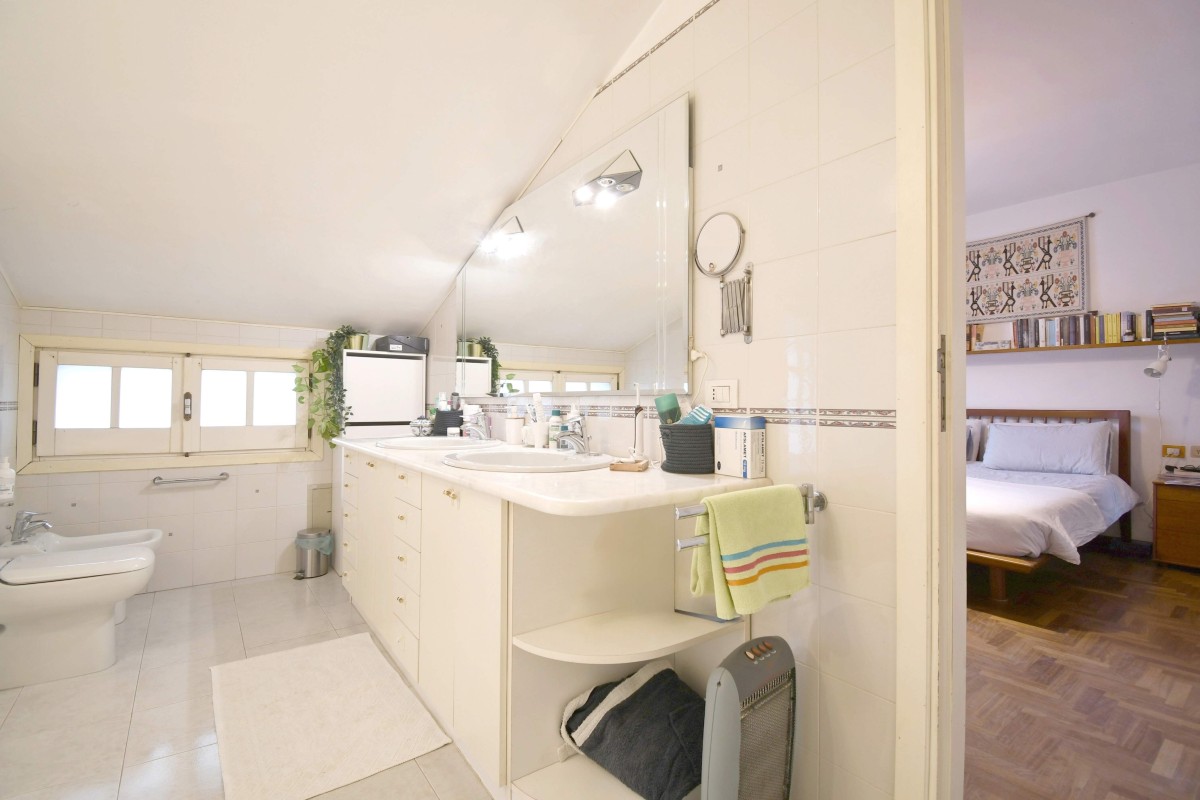 La zona notte, situata al primo piano, è composta da tre camere da letto ben distribuite, un bagno e una zona di servizio con accesso diretto dalla camera matrimoniale, perfetta come cabina armadio o spazio privato da personalizzare secondo le proprie esigenze.
