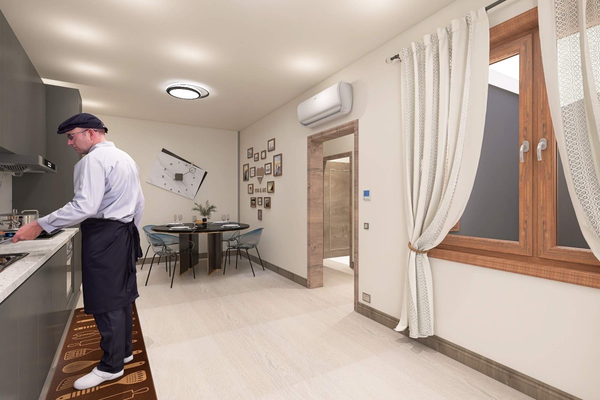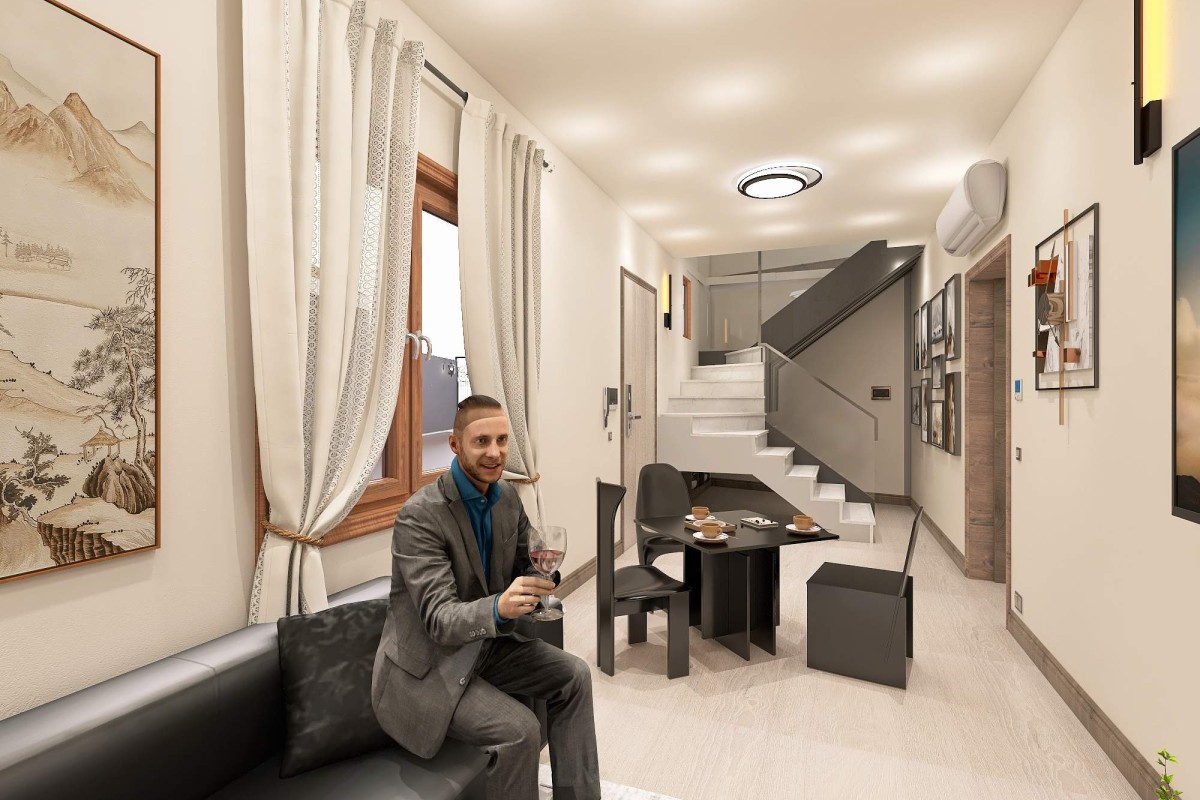 Si accede all'immobile da una luminosa zona giorno con cucina separata. Un disimpegno ci conduce alla zona studio e alla zona notte. Quest'ultima è composta da una camera da letto e un bagno. Sempre dalla zona giorno tramite una scala si può salire al primo piano composta da due camere e un bagno. Completa l'immobie la zona cortilizia dotata di una zona lavanderia, una zona con forno sardo e pergolati ad aria passante. Attualmente l'immobile è in corso di ristrutturazione e può essere ancora personalizzata.